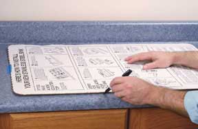 Place the sink cut-out template on the countertop, where the sink is to be installed. Trace around the outside perimeter with a pencil. When tracing the sink opening, set it back at least 1-1/2″ from the front edge of t