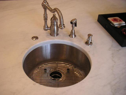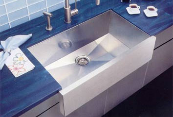Also known as basin sinks, vessel sinks were once only used in the bathroom. Today, vessel sinks are becoming more popular for use in the kitchen. Basin sinks sit on top of, or slightly recessed in, the counter. Not only does this style of sink make an eye-catching statement; it also has a very functional side. Because it sits higher up on the counter, you no longer have to bend and hunch over the sink while you wash the dishes.